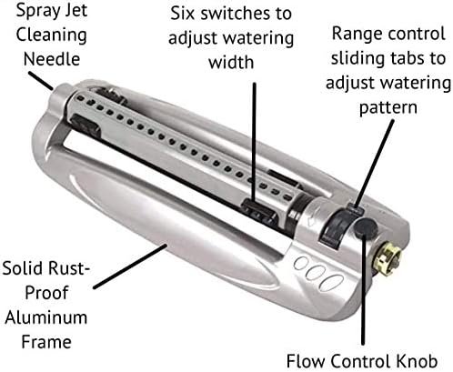 Rocky Mountain Goods Metal Oscillating Lawn Sprinkler – Rust-Proof Aluminum Base – 4,100 Sq. Ft. Coverage – Easy Adjust Range Control – Built-in Spray Jet Cleaning Needle