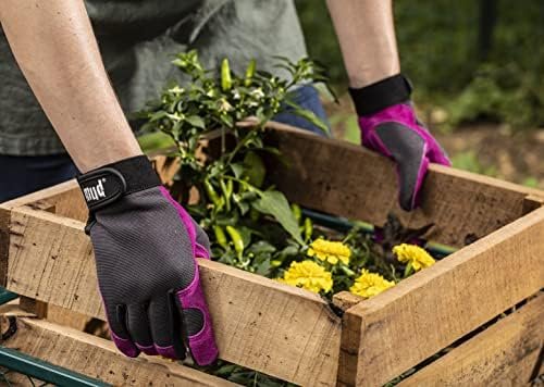 Rustic Mud Women’s High-Dexterity Cowhide Leather Palm Garden Gloves, Durable, Abrasion Resistant, Hook and Loop Closure