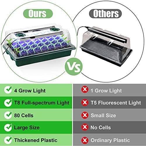【More Controllable Than Outdoor】The weather changes quickly in summer, this seed starter tray with grow light has 80 cells and 4 LED grow lights, it is enough to provide a consistent environment for seed sprouting, which is conducive to seed germination and healthy growth