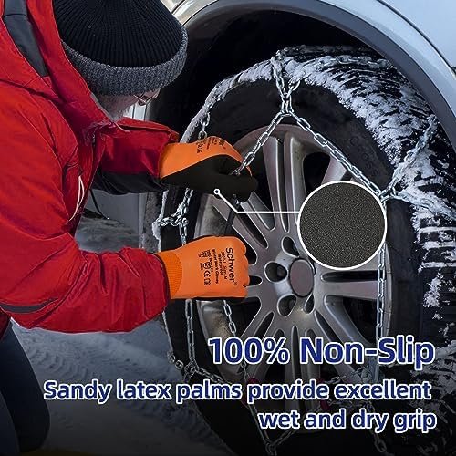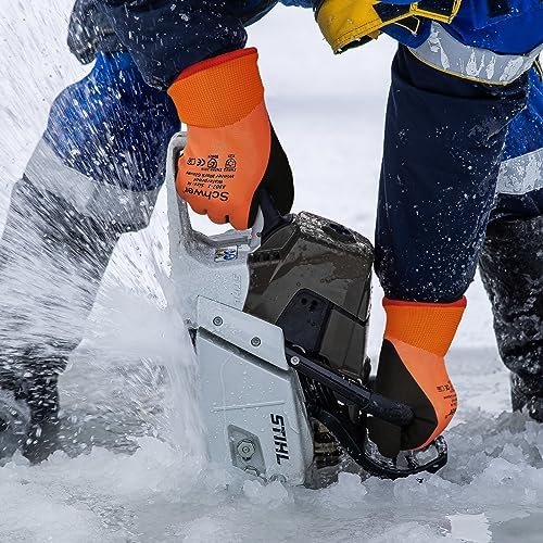 【Multi-Purpose】High-viz orange coloring lets you be seen and be safe. These warm work gloves are perfect for a variety of indoor and outdoor work such as grouting or wet saw, snow removal/salting, working with the water troughs, cleaning snow off, driving, gardening, snowball fights, skiing, outdoor chores, etc.