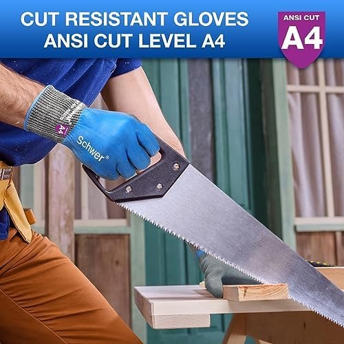 【ANSI Cut Level A4】These ANSI A4 cut proof gloves feature a seamless 13-gauge tliner that keeps hands warm while providing ANSI cut level A4 and abrasion resistance. Revolutionary knitted 13 gauge lightweight and high tech durable fiber with added frosted latex palm coating give you a more satisfying and comfortable use experience.