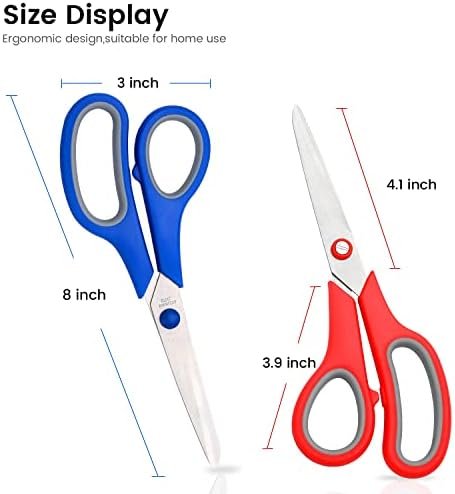8 Inch Scissors:8 Inch Scissors Bulk Set of 5-Pack stainless steel scissors, measures approximately 8 by 3 inches. Yellow, green, blue, red and black color are included.
