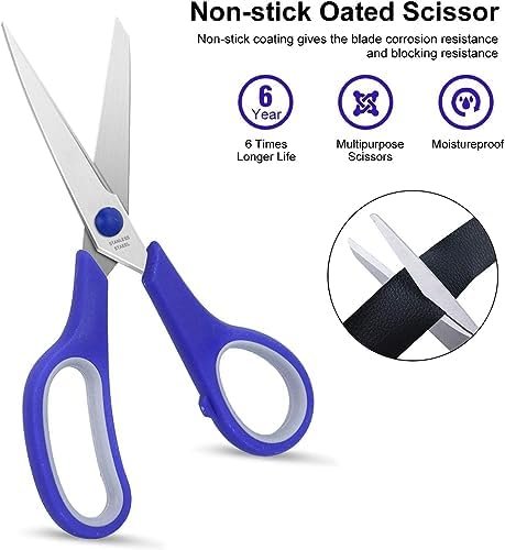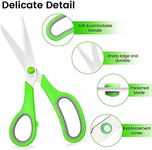 Scissors Set of 5-Pack, 8″ Scissors All Purpose Comfort-Grip Handles Sharp Scissors for Office Home School Craft Sewing Fabric Supplies, High/Middle School Student Teacher Scissor, Right/Left Handed