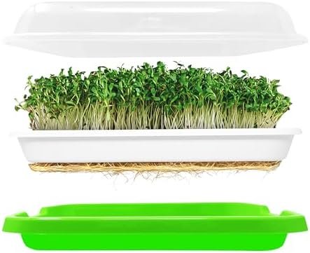 DURABLE, AND BPA FREE: Made from durable and food-safe Polypropylene (PP) material, our sprouting tray is built to last and is safe for you and your family to use. The product comes with a green bottom tray, a white inner tray, and a lid to protect sprouts from external harmful elements and to contain humidity.