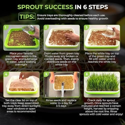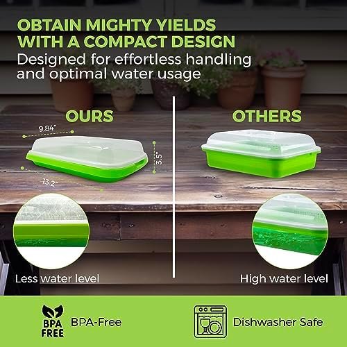 COMPACT AND EASY TO USE: The compact size of the tray makes it perfect for those with limited space, such as apartment dwellers or those with small kitchens. The tray is easy to use: simply add your seeds and water and watch your sprouts grow in just a few days. These trays are also designed to be stacked on top of each other, even with the lids on. This provides maximum space efficiency.