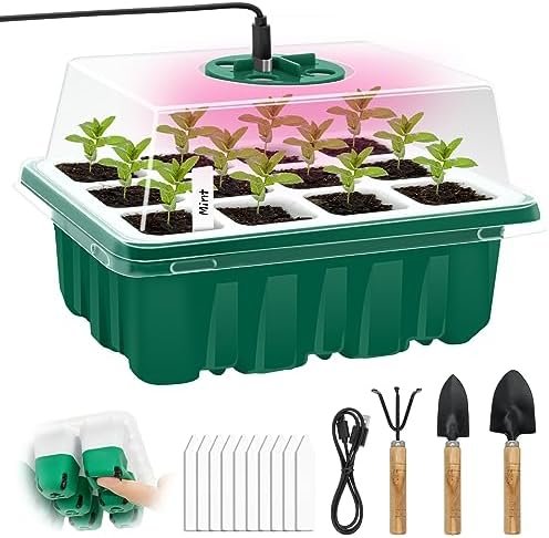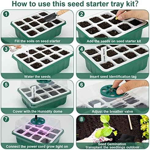 Seed Starter Tray with Grow Light: Our GRJYLS seed starter kit comes with detachable full-spectrum plant led grow lights, Using advanced bio-lamp technology to promote photosynthesis of plants, so that plants are always in the best growth environment.