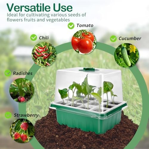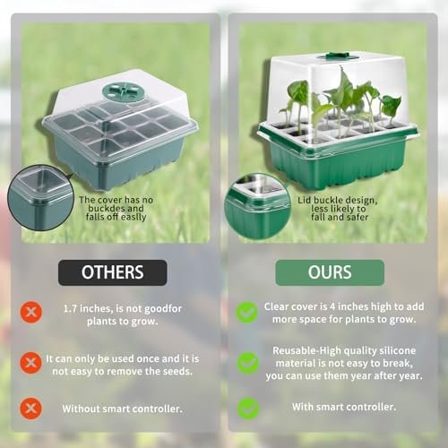 Humid but Warm Environment – Each humidity dome has an adjustable circular vent, which can easily adjust the inner humidity and temperature by rotating the regulator. A higher transparent lid design (4 inches) provides more space for seed growth and allows you to keep an eye on the growth of seedlings or plants at any time. Providing more spacious growth room for seedlings, conducive to healthy plant development.