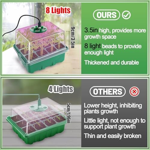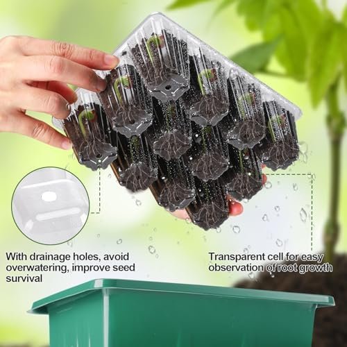 ELEVATED COVER AND DURABLE TRAY: With a height of approximately 3.5 inches, the clear cover provides ample space for plant growth. The seed growing germination kit, made of high-quality PVC, is safe, environmentally friendly, and durable. It features drainage holes at the bottom to prevent overwatering and enhance the survival rate.