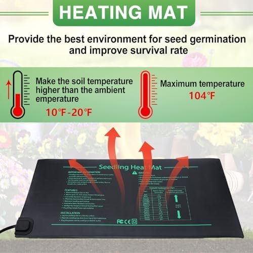 APPROPRIATE TEMPERATURE: The seed heat pad ensures sufficient warmth for seed germination, can heat the soil to 10℉-20℉ above room temperature. The heat mat maintains a temperature range of 95-109°F, creating an ideal hot and humid environment for seed cloning propagation and seed germination.