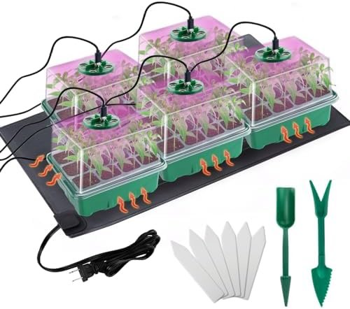 EASY INSTALLATION: Assembling the grow light and humidity dome is a breeze. Connect the power seed starting kit to kickstart your planting journey. The seed tray, combined with the heat mat and full-spectrum grow light, supports healthy seedling growth. Note: Please refer to the instruction manual for detailed setup guidelines.