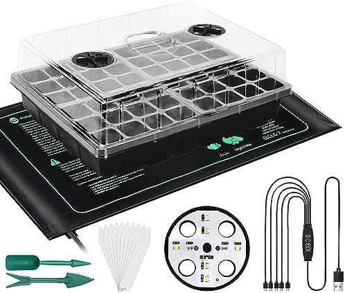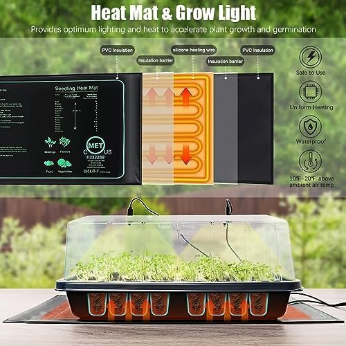 Grow Health and Efficient: Our Seed Starter kits are the ideal size for the growth of small seeds of various plant seedlings. For vegetables, strawberries, flowers, fruits, and other plants. The grow light included with the seed starter tray is designed to mimic natural sunlight and provide the optimal spectrum for plant growth, while the seedling heat mats provide gentle, consistent warmth to promote healthy germination.