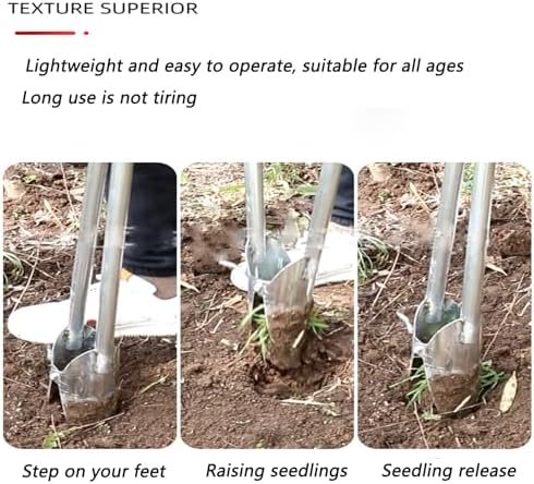 EFFICIENT:This planting tool makes quick work of extracting soil and preparing a suitable hole for planting bulbs, annuals and more.It can easily dig holes, fill them up, break mulching film, and plant seedlings all at once,transplant seedlings. This saves you time and effort while ensuring precise and efficient planting every time.