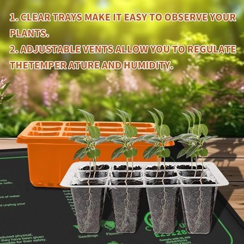 The transparent domes has an adjustable circular vents designed into the top to regulate the temperature and humidity of your seedling environment, promote air circulation and help seed growth.