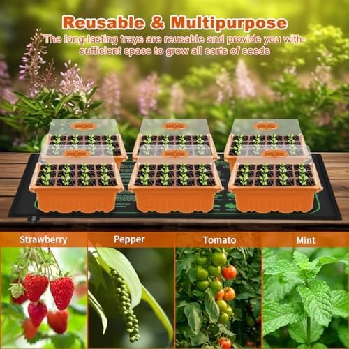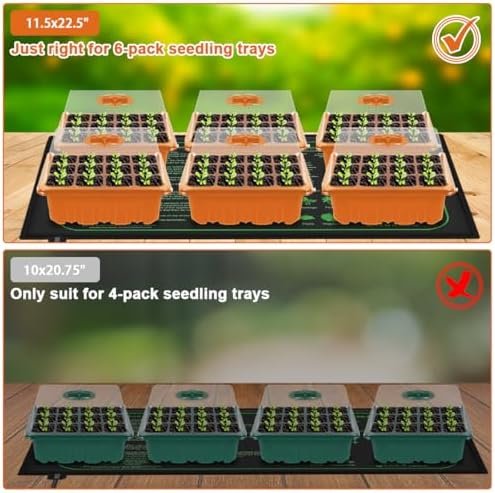 11.5″x 22.5″ Heat Mat Compatible with 6 Pack Seed Starter Kit – unlike other heat pads, these fit perfectly in the seed trays on the market, it made of transparent material, it allows you to carefully observe the trend of seeds growth. The humidity dome is also designed with a vent which allow for oxygen exchange and moisture retention, creating the optimum climatic conditions for your seeds.