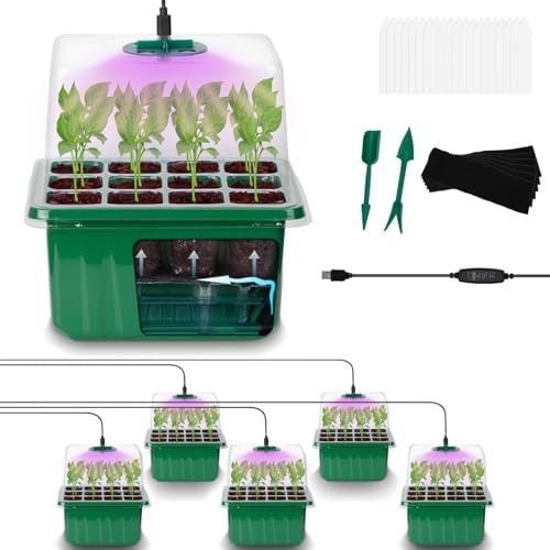 443443443443 Self-Watering Seed Starter Tray – Kit with Grow Light and Humidity Dome, 6-Pack 72-Cell Plant Seedling Tray,Reusable Plastic Germination Trays for Indoor Gardening Seeds Growing Starting – 4zera3a