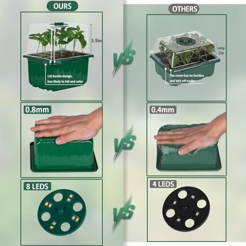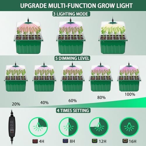 EFFICIENT GROWING & WIDELY APPLIED: Our seed starter kit is the ideal size for growing small seeds from seedlings of various plants. Suitable for a wide range of plants. It can artificially control the light quality, light intensity, photoperiod; humidity and temperature, so that the plants are always in the best growing environment, effectively shorten the growing time, and improve crop yield and quality. Ideal gift for novice gardeners.