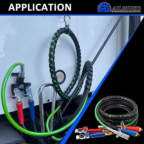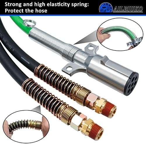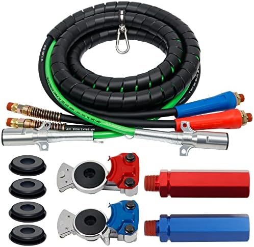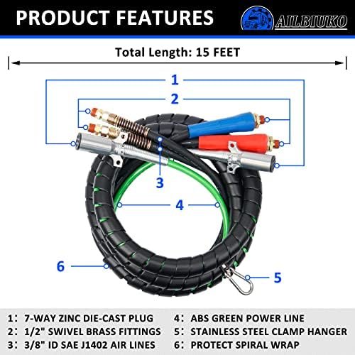 【INCLUDE】- 15 Ft 3 in 1 ABS 7 Way Electrical Cable and Rubber Air Line Hose Wrap Assembly: [TRUCK/TRAILER CABLE for ABS SAE J2394 – 4/12-2/10-1/8 -65°C/-85°F (Green)] – [AIR BRAKE SAE J1402 A DOT TYPE S 3/8 I.D. (Black)] – [SAE J560 for Plug]; 1 Pair Glad Hands & amp; Extension Hexagonal Handles; 4 PCS Extra Gladhand Seals.