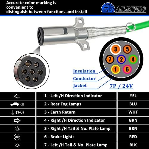 【7-WAY PLUG】- SAE J560 for Plug. Use the industry-standard zinc die-cast plug to efficiently transmit power from the engine to your trailer/truck. 7 Way electrical cable uses real high-quality copper so it has good thermal conductivity and electrical conductivity, ensuring the normal use of lights such as turn signals and brake lights during driving.