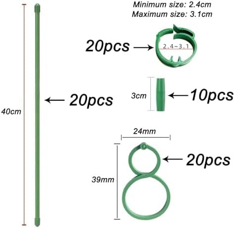 [Package Included] 20Pcs 15.7inches plant stakes, 20Pcs Buckles, 20pcs Clips and 10pcs Connetor, Plant stakes are 0.27 inches in diameter.