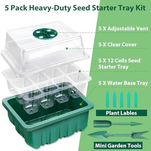 Extra Planter&Wide Range of Application: Sfee seed starter tray with lid can be put into different seeds and is suitable for gardeners, growers, farmers, beginners or kids who want to try their hand at planting. Seeding Tray size: 7″x5.5″x2″. They can stack on top of each other, saving space and being easy to manage. These growing trays are suitable for small seeds such as flowers, vegetables and so on.The planting trays is equipped with a planter to facilitate soil loosening and planting, etc.