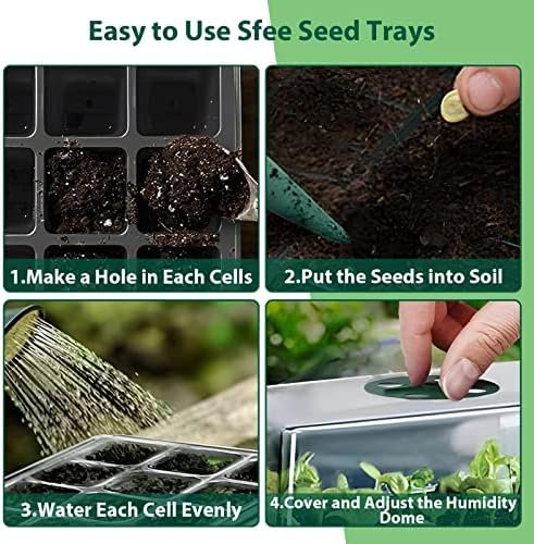 Perfect Designed and Practical: Sfee seed trays seedling starter is designed with highly transparent plastic that allows you to easily observe and record the growth of your plant. Enjoy the secrets of plant growth. Growing trays design is pretty standard and it is the ideal size for a window sill. The lattice of each seedling tray has enough space for good root development. The seed starter tray is designed to be airtight to keep plants warm and moist to ensure healthy growth.