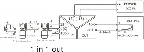 Universal for two?wire system, three?wire system transmitter. DC24V power supply, provides isolated power distribution for the transmitter on site, and at the same isolates and transmits the current signal generated by the transmitter from the site to the control room, PLC, DCS and other input terminal interface current source