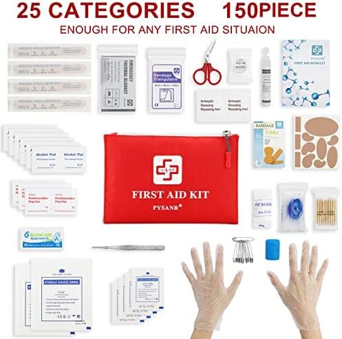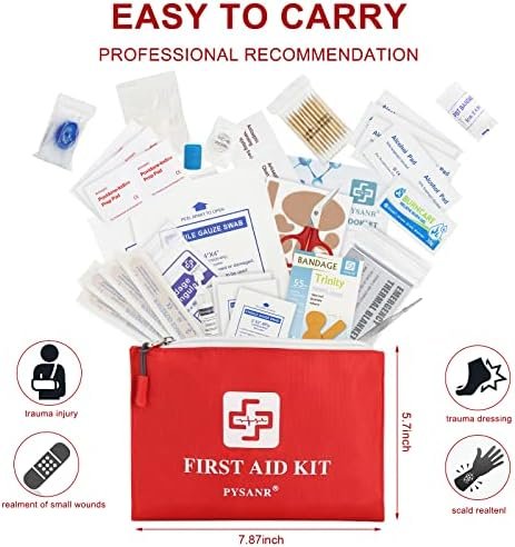 【Compact & Portable】Compact and portable design, the size of PYSANR waterproof first aid kit bag is 7.87*5.71*1.97 inch, so our first aid kit is easy and lightweight for you to carry with 150 piece essentials and you can refill it when you need to. The suitable size allows you to store or use the emergency kits wherever you want, such as at school, in your school bag, or on your bike, boat, motorcycle etc.