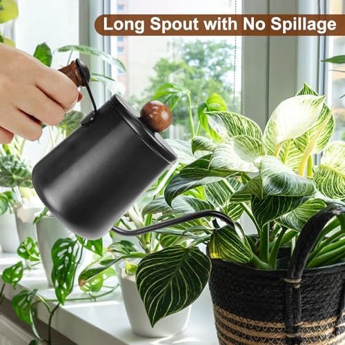 【No-Leak】Small watering can for indoor plants have a uniquely designed long spout. The long spout of the metal watering can has a calculated perfect arc, and you can water at a slight angle. Even if the indoor watering can is used to water at a high place, the water flow is extremely stable and will never leak! Watering can indoor plants have a metal lid. The metal lid tightly fits the body of the mini watering can, which is another guarantee against leakage!