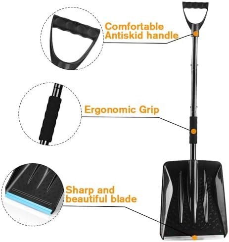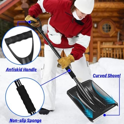 【Excellent Design】Equipped with ergonomic D-shaped handle, you can use less strength to remove snow, and protect your hands from frostbite when digging snow. Sponge pads will make you feel very comfortable and prevent your hands from slipping.