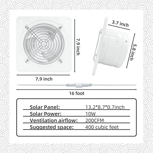 IPX2 waterproof rating, easy to face the humid environment. Metal shell design, exquisite appearance, sturdy and durable. 16 foot cable to meet the needs of various scenarios. The combination of solar panel and battery provides more stable energy for exhaust fan. Solar & Battery