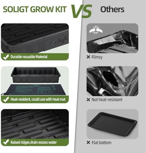 Maximize Seed Starting Success: 10 Pack SOLIGT No Hole seed starting trays is a great way to keep your seedling organized and happy. Seed trays hold your soil in place and you could grow healthy plants. Seed trays and flats reusable is easier to treat your seedlings all the same time as they’re in the same trays like watering, transporting, and transplanting. 10 trays in a pack, you could dedicate one separate seed tray for every type of seed, making labeling easier, and avoiding confusion.