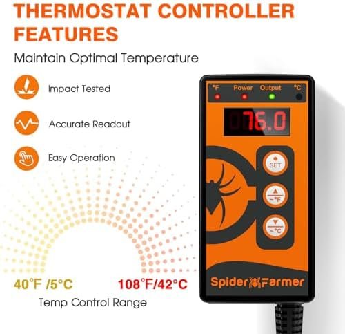 [SIMPLE HEATING SETTING]: This plug-and-play thermostat controller is designed to control the temperature of the heating mat, allowing plants to obtain a stable and controllable heat source during the budding stage. The adjustable thermostat allows you to adjust according to the plant conditions at any time to accelerate the planting or cutting growth. The temperature setting range is 40°F-108°F (5°C-42°C). The temperature display range is 32°F-140°F(0°C-60°C)