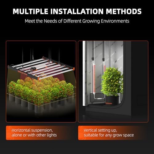 Multiple Installation Methods: Supports both horizontal and vertical suspension, easy installation in minutes with included mounting kits for any grow space. This flexibility allows you to easily create customized lighting setups for your indoor garden or greenhouse by making adjustments based on plant growth.