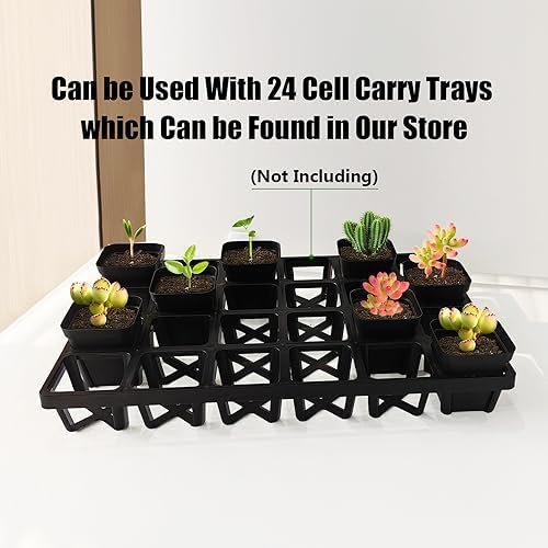 2.7″x 3″(D*H) ,Sturdy enought to hold soil. For seeds starting, germination and propagation. Our store has a 24 cell square pot carry trays. Find it on our store.