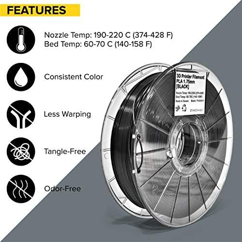 Is your filament compatible with “X” printer? STANCEMAGIC’s filaments are compatible with various 3D printers with open systems and that can accept 1.75mm or 2.85mm filaments. Make sure you use the correct diameter filament depending on your nozzle size.How long is your filament? There are about 323m ~ 330m (1064ft ~ 1082ft) of filament per 1.75mm 1KG spool.How many grams is the spool itself (without filament)? 200gIs the PLA filament non-toxic? Yes, The PLA filament is made mainly from plants, so it is safe to use at Home. STANCEMAGIC PLA filament’s raw materials passed SGS-RoHS non-toxic certifications.Can STANCEMAGIC PLA filament be used to make cookie molds? No, it will melt in prolonged high temperatures and the filament coloring (if any) is not certified as food safe.Why choose “PLA” filaments? PLA filament is very easy to work with which makes it perfect for beginners. PLA can adhere well to most surfaces, and its low printing temperature means that it has a low tendency to warp.What temperatures do I print PLA at? The exact temperature will vary based on your printer, the recommended range of temperature for STANCEMAGIC’s PLA is 190C-220C (374F-428F) for the nozzle, and 60C-70C (140F-158F) for the bed/platform. You can also use non-heated beds/platforms if you use double-sided tape or glue.