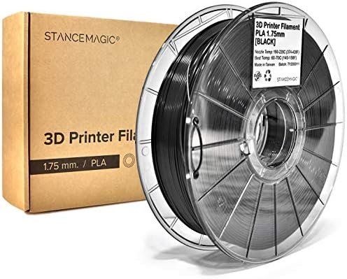 StanceMagic 3D Printer Filament, PLA, 1.75mm, 1kg, Highly Accurate +/- 0.05 mm, for FDM Printers or 3D Pens [Black]