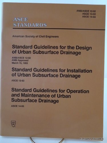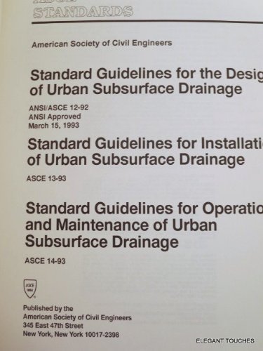 For use in the installation phase of urban subsurface drainage systems, the Standard ASCE 13-93 deals with construction site safety; materials receiving, handling, and storage; foundation preparation; and site restoration. Inspection along with installation considerations are stressed.