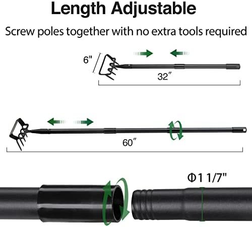 Long Handle is adjustable to be 32 and 50 inch which is convenient to use when standing or sitting down and handy gardening tools to just keep by the backdoor, as well.