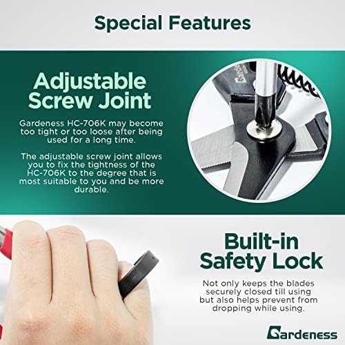 ✅【PRECISION CRAFTSMANSHIP】: Experience the artistry behind Gardeness gardening shears, featuring fine SK5 steel blades celebrated for their exceptional sharpness and precision. These blades shine when cutting tougher, slender branches (6mm or less) and flower stems. Remember, applying oil after each use is crucial to prevent oxidation and rust.
