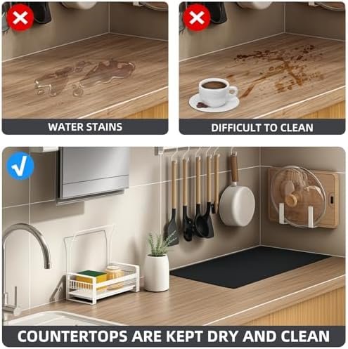 Non-Slip Design: The natural rubber bottom of our drying mat ensures a secure grip, preventing any water from seeping through and leaving unsightly stains on your countertop. Enjoy a clean and slip-free kitchen environment.