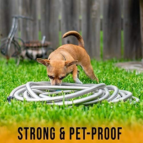 Our definition of success differs from the norm, and we uphold exceptionally high standards. We want our hoses to be RESILIENT, STRONG, SUPERIOR Quality, TOUGH, LIGHT WEIGHT, DURABLE, Rust-proof, Flexible, Dog Chew Proof, Crush Rust and Thorn-proof, Pet-proof, Puncture-proof, and outperform any you’ve ever used in your garden. We stand behind this mission by making sure this is the last (and best) metal garden hose that you will need to buy for lawn watering! And that there will be a new boss in the yard.