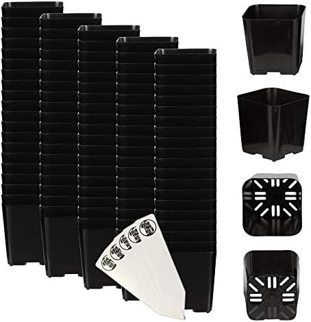 The Hydroponic City 2 Inch Black Square Nursery Pots for Starting Seedlings, Succulents, or Cacti – 2″ x 2″, Pack of 100 + 5 THCity Stakes
