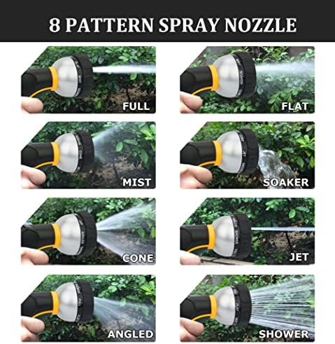 One versatile nozzle fits all, you will be pleasantly amazed by the functional choices of the 8 patterns: Upgraded integrated design, prevents leakage from cracks like other nozzles. Ergonomic thumb control allows you to control water flow from zero to maximum by using your thumb, freeing up your palm. It supports multiple modes to choose from including Full, Flat, Shower, Cone, Jet, Soaker, Angle, Mist. Just simply rotate the bezel and you can change the pattern to meet your needs.