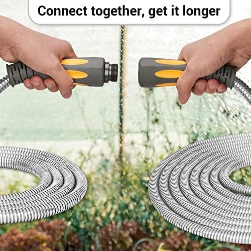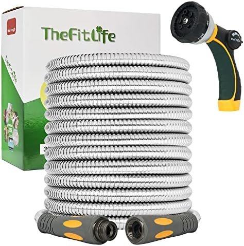 100% Satisfaction: You can use it for gardening, watering, cleaning, washing, pet bathing and also use with sprinkler, house pool, RV and so on. The hoses can be connected to get longer, you can use the desired size to gardening and don’t worry about the length may not reach. Our stainless steel garden hose can be used in all weather conditions. You can also easily store and maneuver it. Just feel confident with this purchase and the hose is backed by TheFitLife with one-year warranty.