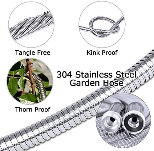 Supreme durability, you don’t need to purchase garden hose every year: Made from industrial grade heavy duty 304 stainless steel, lightweight and durable, this ultimately increases the lifespan of the hose. The most obvious benefit provided by a metal garden hose is supreme durability. It’s not like an expandable hose that’s easy to fray, tear and wear.