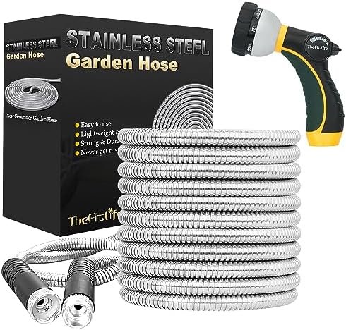 443443443443 TheFitLife Flexible Metal Garden Water Hose – Upgrade Leak and Fray Resistant Design, Stainless Steel with Solid Fittings and Sprayer Nozzle, Lightweight Kink Free Durable Easy Storage (100 FT) – 4zera3a