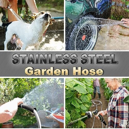 365-Day no question asked warranty, get your stainless steel hose now: Available in 3 feet, 5 feet, 10 feet, 15 feet, 25 feet, 50 feet, 75 feet, 100 feet and they are connectable for longer size, like 125 feet, 150 feet or 200 feet. You’ll feel 100% satisfaction from the moment you receive our stainless steel garden hose and we are quite sure that you will be super-impressed with the durability, protability, versatility and high quality.