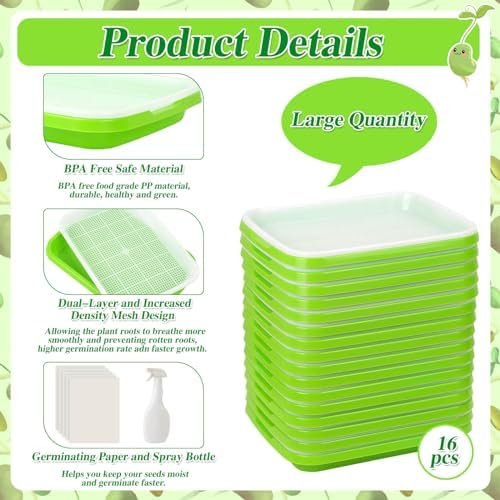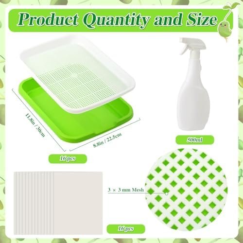 Microgreens Growing Trays: You will receive 16 seed sprouter trays, 16 germinating growing paper and a 500ml spray bottle, abundant amounts satisfying your daily cultivation needs.