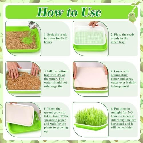 Easy To Use: These microgreen trays with concave-convex design, easy to take out the inner mesh tray. Even beginners can use this sprouting trays easily. It only needs to spread the soaked seeds evenly, pour appropriate water, cover seedling paper, spray water to keep it moist and change the water regularly.