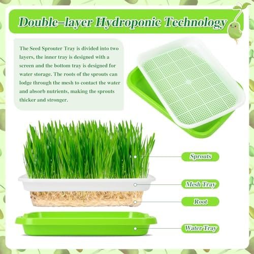 Double Deck Design: Each sprouting tray includes an inner tray, and a bottom tray. You can easily take out inner tray out of the bottom water-saving tray. The inner tray with small holes provides excellent breathability, helps seeds grow faster.